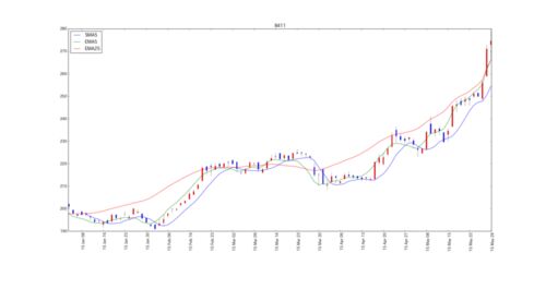 Pythonで株・為替・先物解析の解析をしてみる。 そのままmatplotlibで描画すると土日祝日が空欄になるため、軸を別設定した。 import jsm import datetime import pandas as pd import matplotlib.dates as mdate import matplotlib.finance import pylab as…